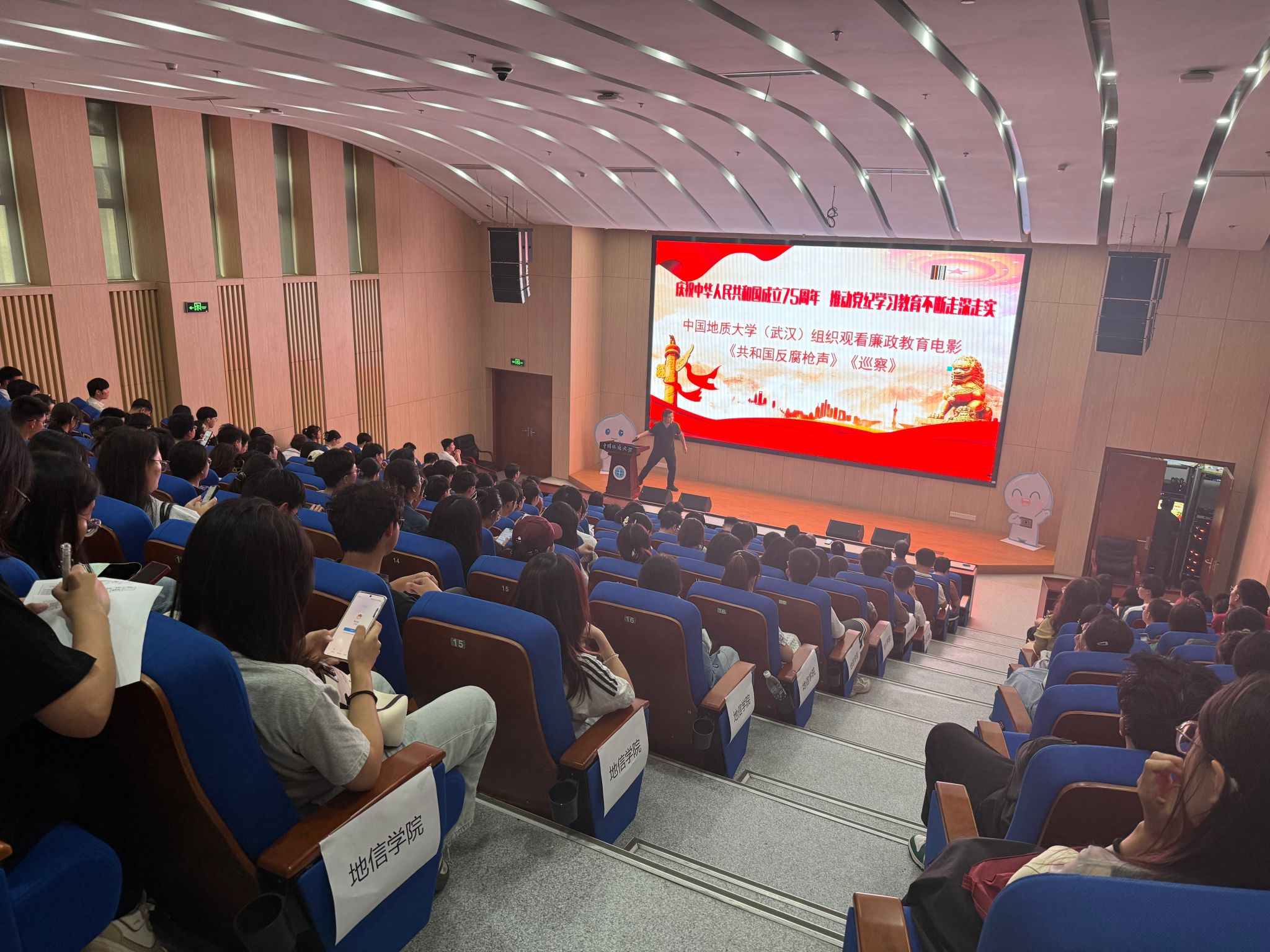 108报告厅观看党史题材廉政教育电影《共和国反腐枪声》和《巡察》。