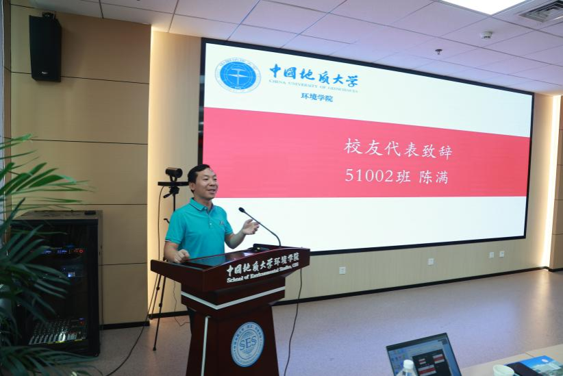 校友代表,51001班朱云法、51002班陈满、53001班王伟、53002班曾宪东依次发言,感谢学校、学院对于本次校友值年返校活动的精心安排,深情诉说校友们求学生涯的点点滴滴,在“艰苦朴素、求真务实”的校训精神引导下,校友们不断为祖国水工环事业发展贡献自己的力量。校友们表示为学院二十余年来取得的发展感到骄傲,并向学院捐赠学院文化石,共同祝福学院越办越好,事业蒸蒸日上。