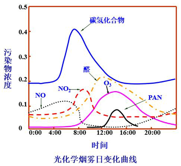 图3 臭氧形成的光化学烟雾日变化曲线