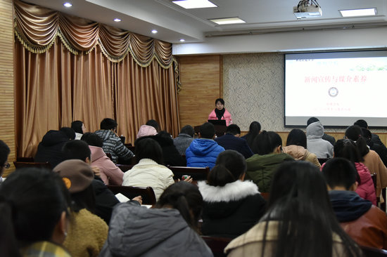 举办“新闻宣传与媒介素养”专题培训。学院办公室、学生工作组全体老师,本科生党团学生组织通讯员、研究生会宣传骨干等50多人参加培训。