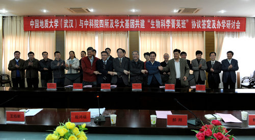 3月24日上午,学校在惠宾楼四层会议室举行共建“生物科学菁英班”协议签订及办学研讨会。参加此次会议的有来自中国科学院微生物研究所、生态环境研究中 心、城市环境研究所、武汉植物园及深圳华大基因研究院五家单位的领导和专家,中国科学院院士殷鸿福、校领导郝翔、王焰新、赖旭龙、万清祥以及校办、教务 处、学工处、免费成人a片