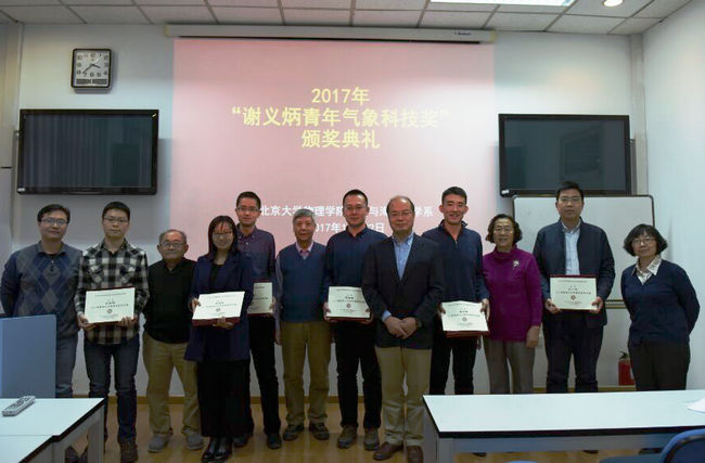 张学海)2017年11月22日,2017年度谢义炳青年气象科技奖颁奖仪式在北京大学物理学院大气与海洋科学系召开。我院大气科学系孔少飞教授荣获2017年度“谢义炳青年气象科技奖”,并在颁奖仪式上作了学术报告。