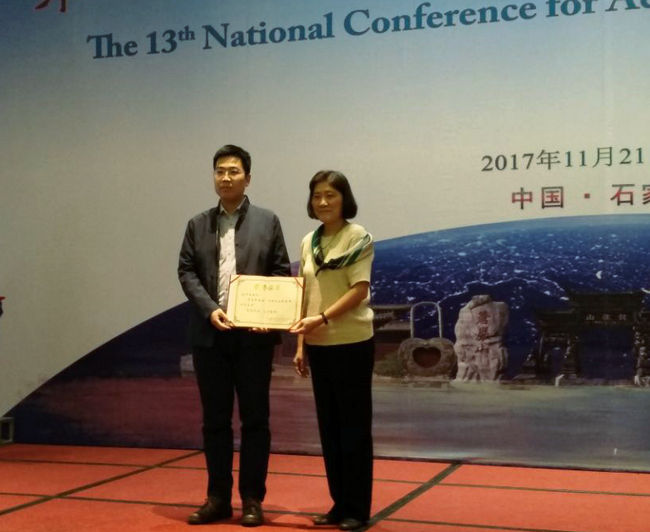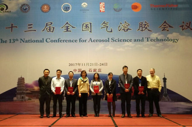 张学海)2017年11月23日,由中国颗粒学会气溶胶专业委员会主办的第十三届全国气溶胶会议在石家庄召开。我院大气科学系孔少飞教授荣获“第五届中国气溶胶青年科学家奖”,并受邀作了报告。