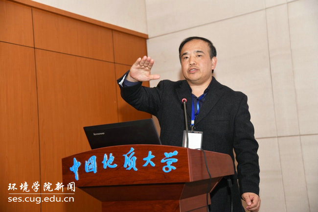 成建梅教授和中国地质科学院岩溶地质研究所郭芳教授共同主持。王红梅教授、郭华明教授、李高军教授分别就洞穴微生物研究进展、地下水放射性组分来源、黄土生物微钙体环境记录的研究进展做了精彩的报告。