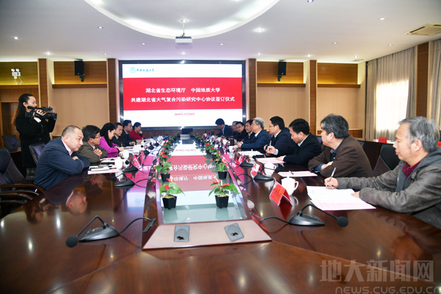 吕文艳、王焰新代表双方签订合作协议。根据协议,双方本着优势互补、共享共赢的原则,共同建设研究中心,开展大气复合污染成因、来源及防控对策等研究,力争3年内创建省部级研究平台,5年左右力争达到国家级科研平台水平。同时,建立科学的大气污染研究体系,为国家和区域大气复合污染防控提供有力科学支撑;建设湖北大气污染防治领域人才培养基地和智库,在大气污染防控领域培养涌现一批优秀的创新型骨干人才和领军人才。