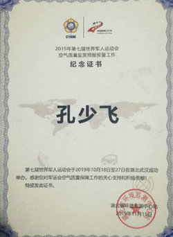 及贵院祁士华、孔少飞、邢新丽、燕莹莹等同志对军运会空气质量保障工作的关心支持和积极贡献,表示崇高的敬意和衷心的感谢。”