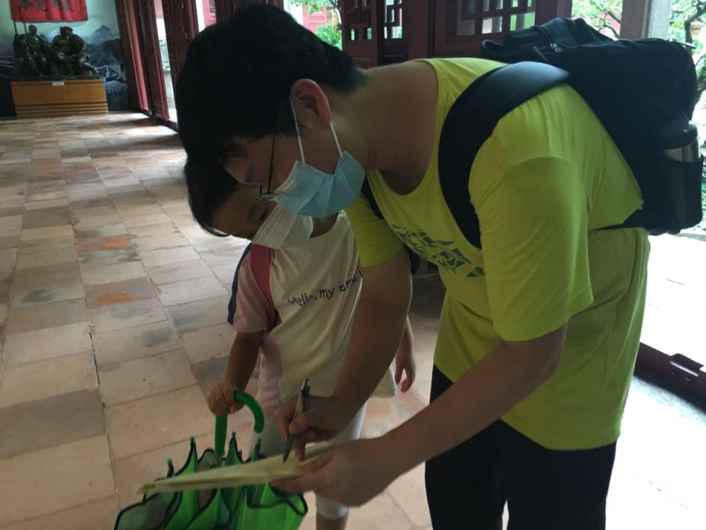 实践团成员学习参观展馆陈列,同时与游客交流并邀请填写问卷。家长带着孩子参观时,一边给孩子作讲解。“我们今天有这样的生活,都是这些先辈们干革命、打天下,经过很多努力和牺牲得来的……”
