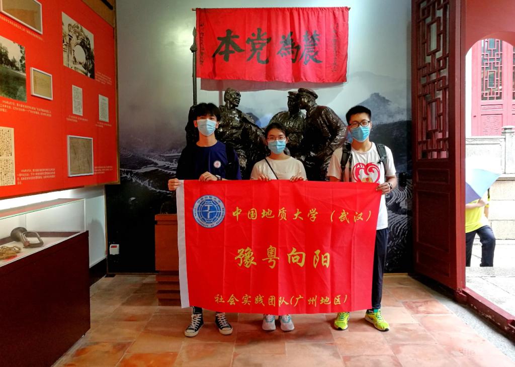 “豫粤向阳”社会实践团的郭玥、刘宇杰、谭昕煜三名同学赴家乡广州市“毛泽东同志主办农民运动讲习所旧址纪念馆”(简称农讲所)开展线下“四史”学习实践活动。