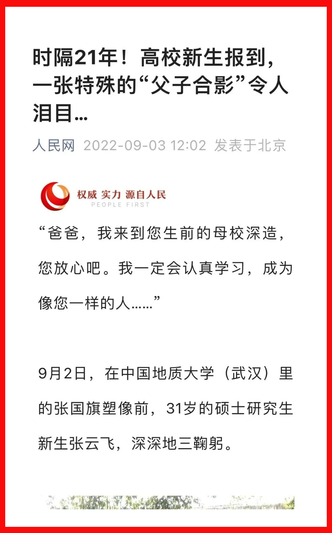 “爸爸,我来到您生前的母校深造,您放心吧。我一定会认真学习,成为像您一样的人……”