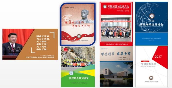 发展报告》、《师生野外实习风采展》、《张国旗画册》和《管理服务手册》等"1+6"党建文化产品,记录师生奋斗足迹、传播环境好声音、讲述学院好故事。“小水滴"、小E在线网络平台、小E有约与师生朝夕相伴。“红山雨”师生合唱团歌声潦亮、党支部风采大赛精彩纷呈,一大批教师、学生典型涌现,各类竞赛摘金夺银。党员活动室、谈心室、阅读角,环境文化积极健康向上。