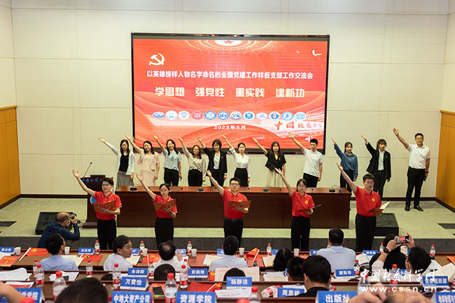 中国社会科学网讯(记者 明海英 通讯员 梁睿华 王海锋)为深入学习贯彻党的二十大精神,扎实开展学习贯彻习近平新时代中国特色社会主义思想主题教育,充分发挥以英雄榜样人物命名的全国高校党建工作样板支部示范引领与群星效应,5月27日,12个以英雄榜样人物命名的全国党建工作样板支部代表相聚中国地质大学(武汉),围绕高校党建“双创”工作交流探讨,并发布联合倡议书。会议由中国地质大学(武汉)党委副书记、纪委书记唐忠阳主持。