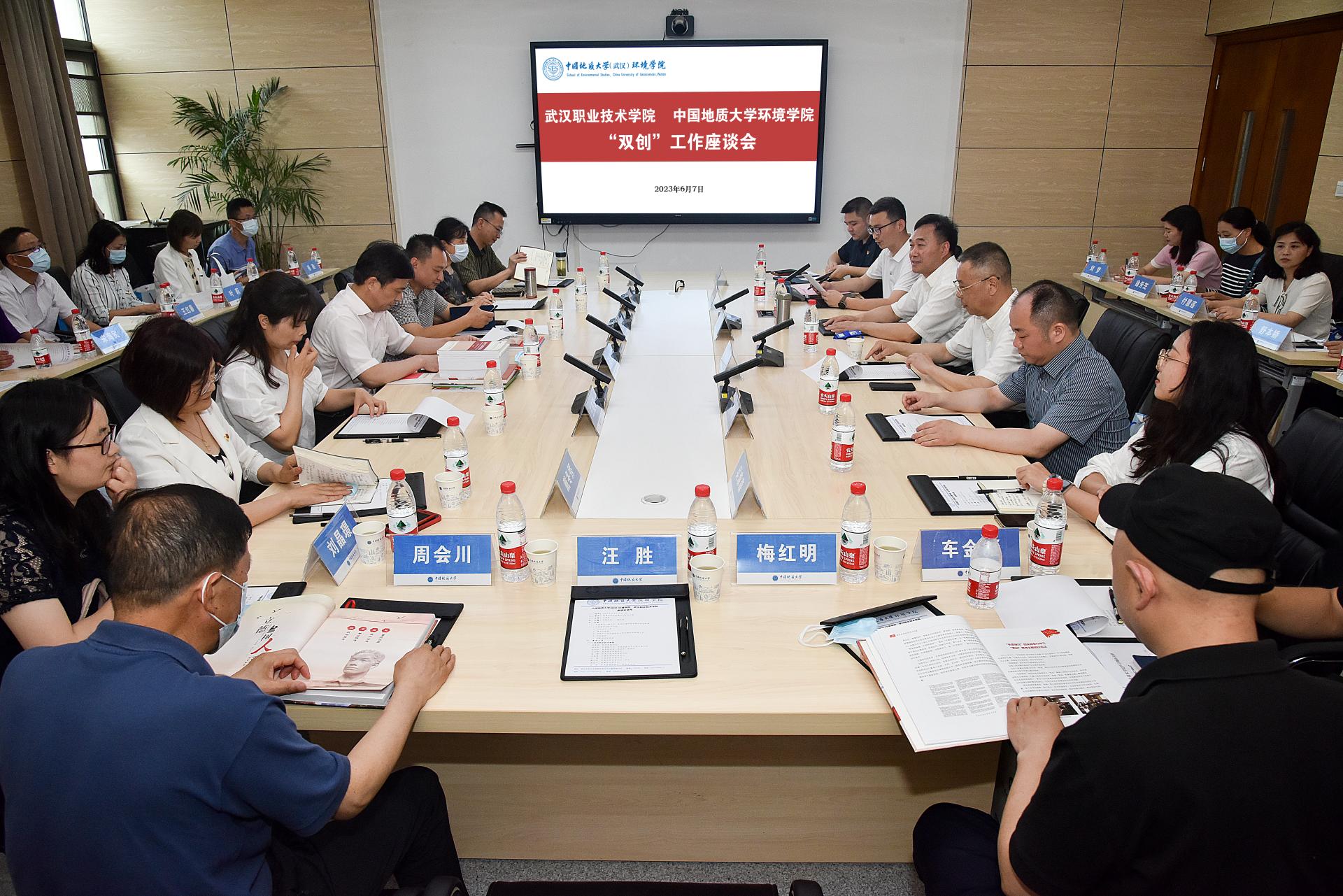 (通讯员陈俊男 编辑/摄影严丽莎)2023年6月7日下午,在科教楼四308会议室,武汉职业技术学院党委副书记胡象斌,党委宣传部副部长王亚琴,计算机学院党委书记刘昌喜、外语学院党委书记江辉、纺服学院党委书记/院长戴冬秀、直属党支部书记周会川、体育美育部部长、党总支书记汪胜、离退休工作处处长兼党总支书记梅红明及部分科级干部、组织员和师生党支部书记代表一行来我院进行党建“双创”工作专题交流。我校党委副书记、纪委书记唐忠阳,学校办公室副主任姜明敏,学院党委书记李素矿,学院党委副书记王海锋,学生党建辅导员陈俊男及“张国旗班”党支部副书记车金凝等参加座谈会。王海锋主持座谈会。