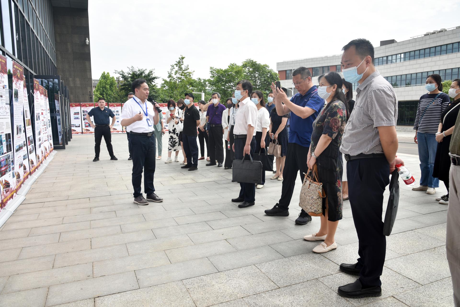 与会人员集体参观以英雄榜样人物命名的全国党建工作样板支部成果展板及免费成人a片