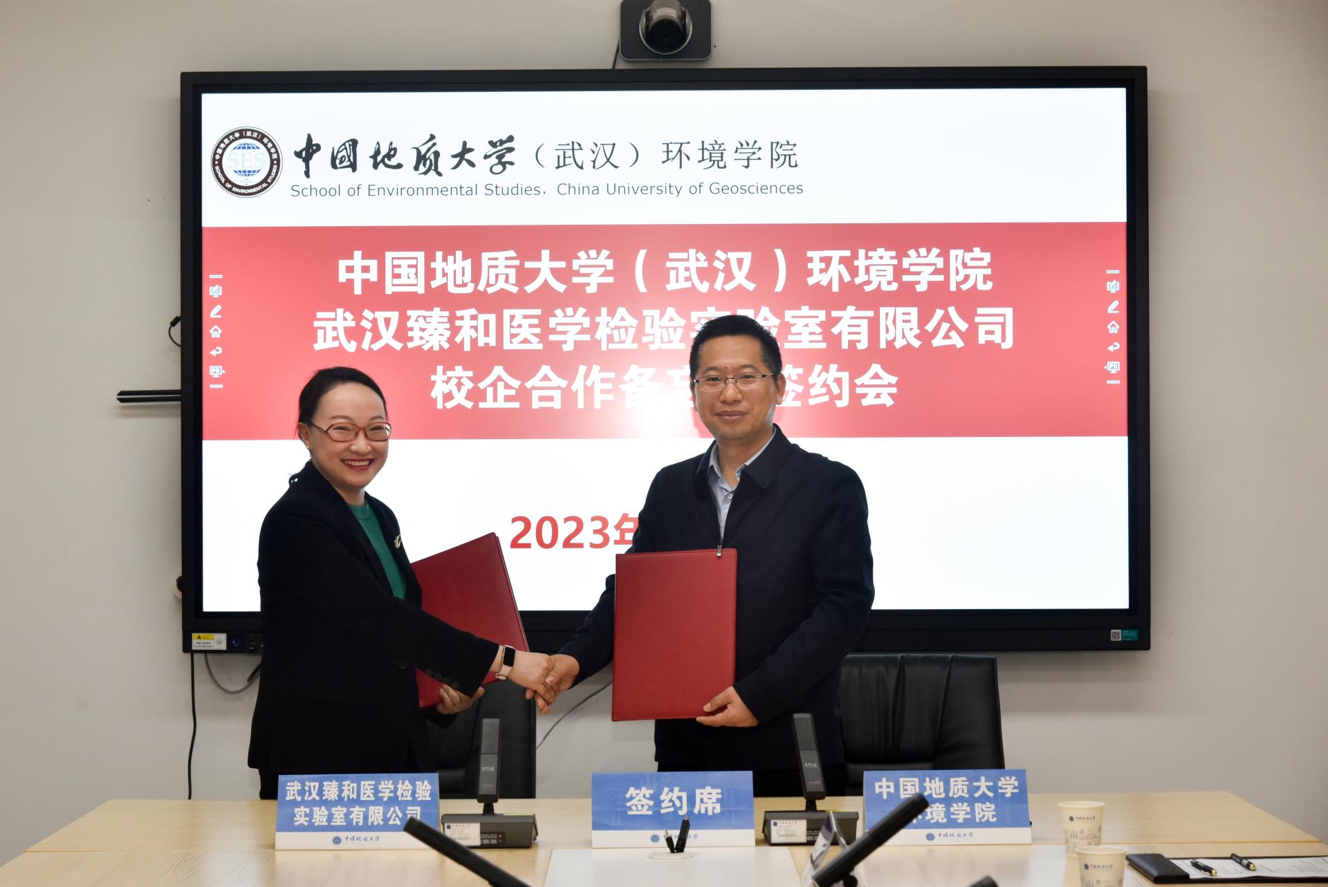 与武汉臻和医学检验实验室有限公司(简称“臻和”)在未来城校区教科四楼308会议室举行了战略合作备忘录签约仪式。我院院长史建波教授和臻和公司赵饮虹女士分别代表双方在战略合作协议上签字。