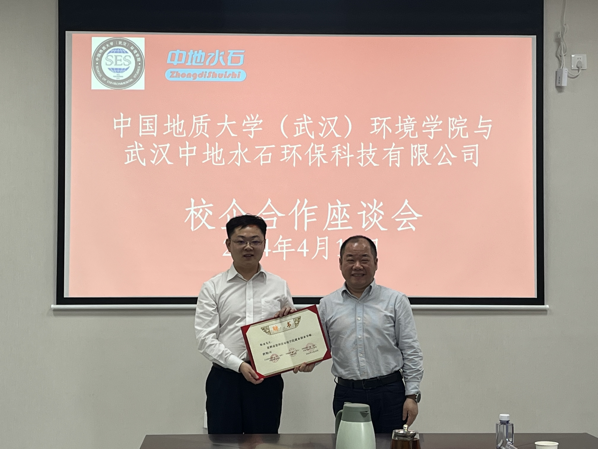 师生的到来表示热烈欢迎。他介绍武汉中地水石环保科技有限公司的建设历程、机构建设、科技创新和主营业务等方面的基本情况,希望校企双方在人才培养、创新创业、毕业生实习就业和科技创新合作等方面加强交流、深度合作。