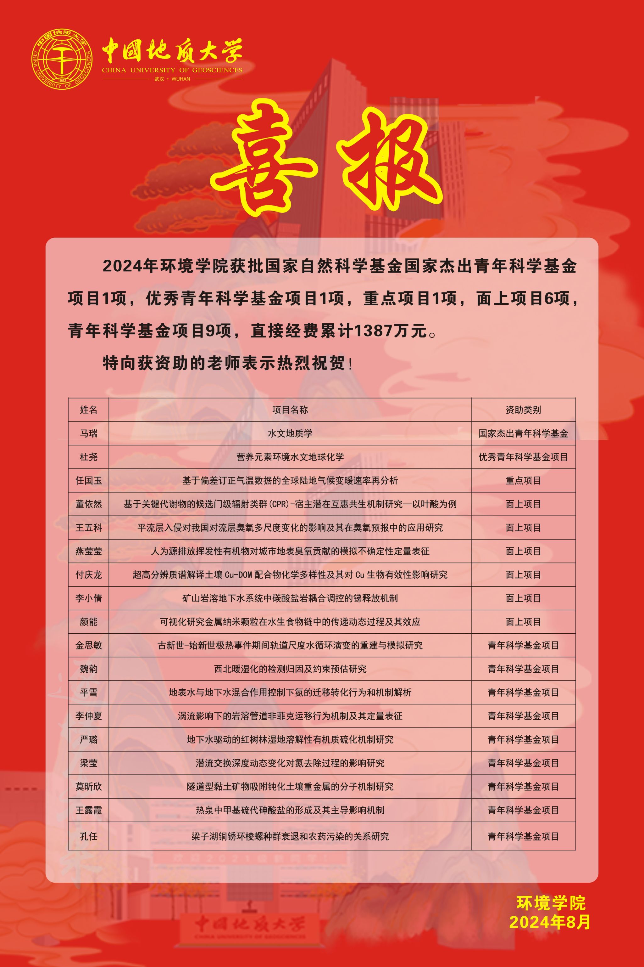 喜报|免费成人a片 获批国家自然科学基金项目18项