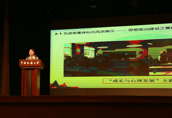 040151班班长姜璐在2016-2017学年度校学生表彰大会上分享班级建设经验