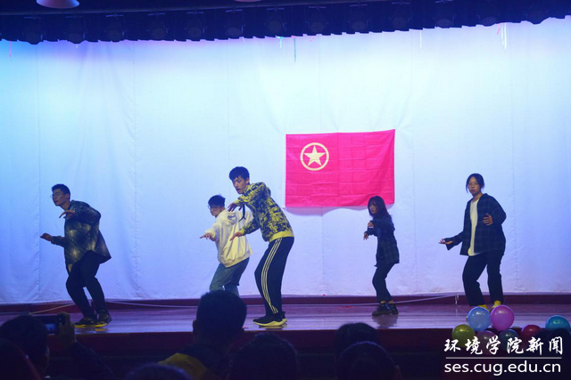 在第一环节的对决中,我院045181-2团支部表现较为优秀。他们以“问到求真,勤学修身”作为自己的口号,将新中国成立七十周年献礼影片《攀登者》作为切入点,通过“线下观影-攀登体验-双语分享”的方式让支部成员亲身领悟“攀登精神”。通过对“攀登精神”的进一步学习,同学们自发的将“攀登精神”与暑期周口店地质实习的经历结合起来,融入大家对专业学习的理解以及中加合作办学特色,提出“要带着地大人的攀登精神走向世界”。在支部风采展示环节中,支部成员宋辰玉自编的rap唱出了地水学子的青春朝气,群舞《uptown funk》则洋溢出支部的活力。在投票环节中045181-2团支部获得大众评审的青睐,以大比分领先优势晋级。在模拟团课展示中,创意十足又意义深刻的朗诵感人肺腑,结合习近平总书记对青年学生的寄语与五四精神,获得现场观众热烈的掌声。