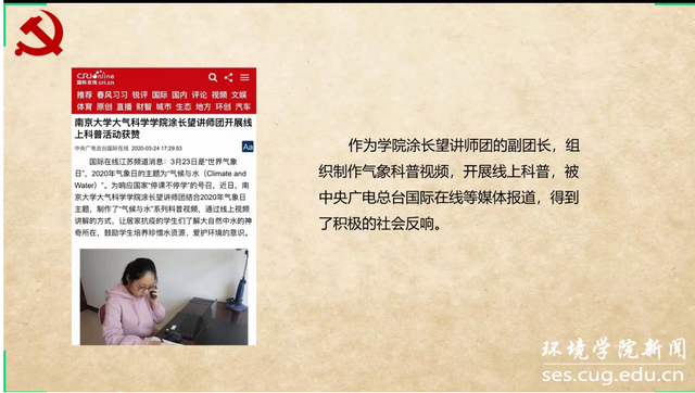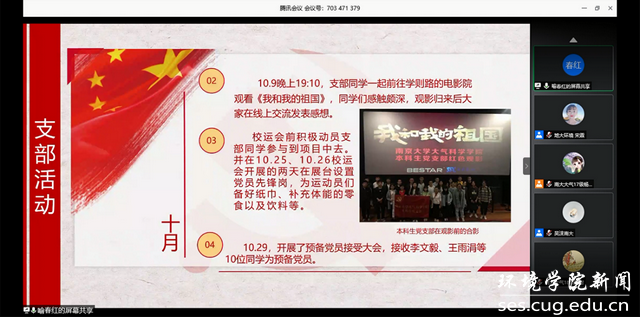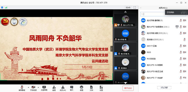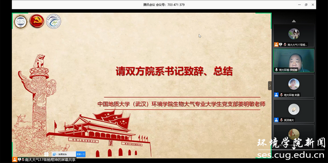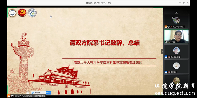 生物大气专业大学生党支部与南京大学大气科学学院本科生党支部通过腾讯会议举行了一场别开生面的云共建活动。南京大学大气科学学院党委副书记喻春红、辅导员吴沫,中国地质大学(武汉)免费成人a片