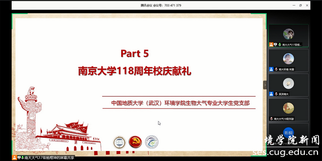 活动第五项,中国地质大学(武汉)为南京大学118周年校庆献礼,生物大气党支部全体成员打开摄像头,向他们表示了最真诚的祝愿:中国地质大学(武汉)免费成人a片