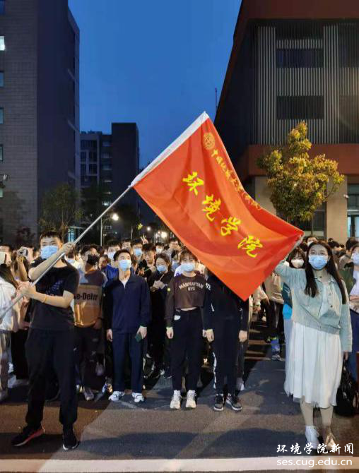 在夜幕下,环境学子围绕熟悉校园,沿路肆意挥洒汗水,体验着健康奔跑的乐趣,涌动的人群形成了一道道的亮丽的风景线,演绎了一场奔跑的青春,用青春点亮未来城和南望山的夜空。