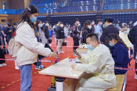 党委副书记王海锋带领学院辅导员李平、孟庆达、陈俊男、宋霖、耿婧分布在核酸检测点现场的各个岗位,各司其职、各尽其责,全面助力核酸检测工作,确保了整个核酸检测工作有序、有效进行。